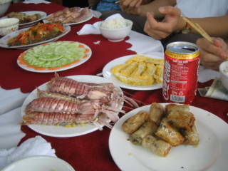 このハロン湾の景色を見ながら、このパック旅行の昼食の時に出た料理です。