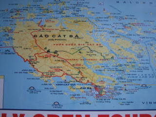 上の写真の左はこの時とまったホテルのあった島の全体です。右がそのコナンの都市部を拡大したところです。この図の中央の島が沢山ある湾をクルージングして赤い点線の山道をバスでホテルに着いたのはもう真っ暗になった午後6時でした。ホテルはこの図の赤と緑のエリアにあります。相変わらずシャワーの湯が出ないのが難点でした。翌朝にはこの左の写真の最も上(北)にある港からクルージングを再開したのでした。