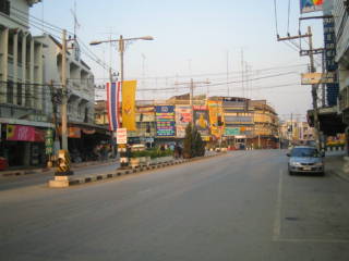 上の左の写真はスコタイの新市街の中心です。ここでバスから降ろされました。たった一人で・・・。この右の車の前にスコタイホテルと看板には書いてあったのですが、よろい戸が下りていまして、チェックインできそうもありませんでした。仕方が無いので、この正面を左に曲がって50mくらい行った所でとりあえず朝飯を食べ、ここからモーター付きサムローでパイリンホテルまで行ったのです。右はこの朝食をとった屋台です。朝6時頃でしたが人通りは少なくのんびりとしたものでした。屋台の朝飯は美味しかったですよ。いずれも2004-12-31撮影