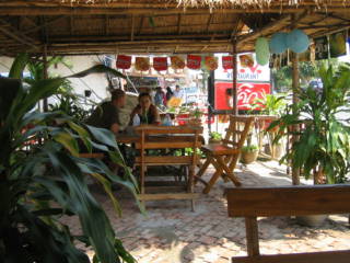 これはスコタイ独特の様式なのだそうです。静かな遺跡の中でもここは特別静かだと思いました。ゆっくりと眺めながらスコタイ王朝の在りし日の想いを偲びました。象の像が支える見事な仏塔であります。 ここで小腹が空いてきたので昼食としました。旧市街の正門近くのタイ料理屋で美味しくいただきました。