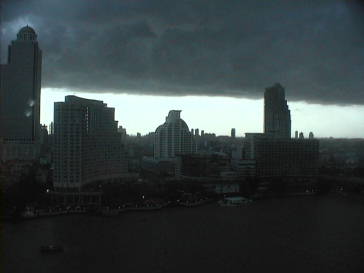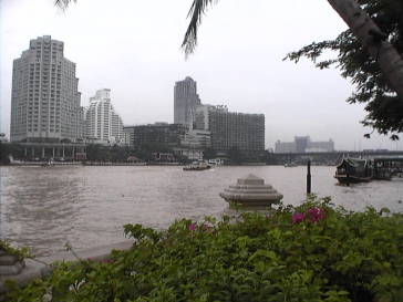 上の写真はペニンシュラの庭から眺めたチャオプラヤ川です。真向いはシャングリラホテル、右端はBTSの終点のサパーンタクシンです。(2004-8-19撮影) ![]()
