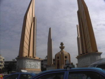 上の写真はワットプラケオへ行く途中、たまたま民主記念塔の前でTAXIが止まってしまった。ここはシャッターチャンスとばかり 窓を開けてパチリと1枚撮りました。(2004-8-21撮影) ![]()